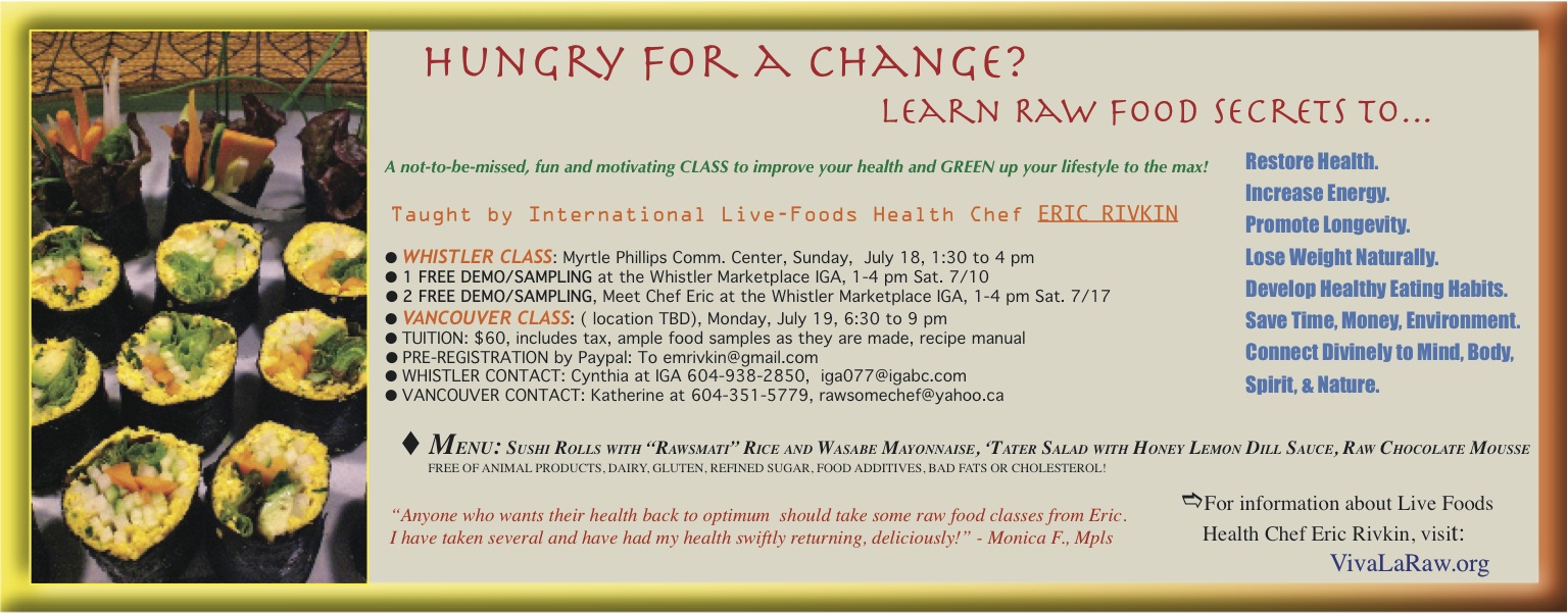 P.S. This pure and precious party is in Poco at my new consciousness-raising space/gallery/raw kitchen/high energy vortex. Please call ahead for my easy to find address, just off the freeway and a mere 40 mins from Vancouver and close to anywhere else in this wondrous world.